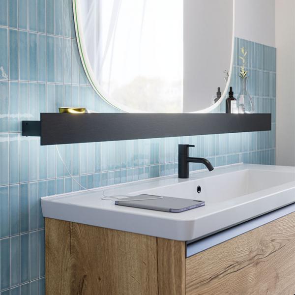 Dansani Luna Classic bringer et friskt pust til badeværelset med dette møbel, hvis detaljer giver kant og god funktionalitet. Badeværelsesmøblet er med sine 120 cm i bredden rummeligt, og du har både opbevaring i den lukkede skuffe og i den åbne hylde herunder. Skuffen åbnes med integreret greb i sort, som matcher den åbne hylde, som her også er i sort (NCS S 8500-N). Du kan vælge en anden NCS-farvekode til den åbne del af møbel, hvis du har lyst. Dansani Larghetto håndvasken har en bred kumme med god plads på hver side. I hvidt sanitetsporcelæn er håndvasken klassisk og holdbar. Specifikationer: