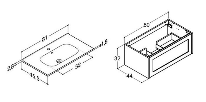 Dansani Luna Classic 80 møbelsæt m/Kantate vask og skuffe - Valgfri farve Denne møbelpakke består af: