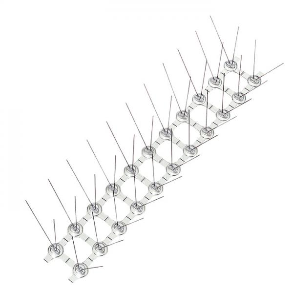 Duepigge 50 x 14 x 11cm Med dette enkle værn mod duer og andre fugle, kan du effektivt forhindre duer i at slå sig ned på tagrender, gesimser og lignende udhæng. Disse duepigge er produceret i polycarbonat med knækriller, så foden nemt kan knækkes mindre - både i længde og i bredde. På denne måde kan den dække et større areal og/eller tilpasses det præcise sted, den skal placeres. Montering foregår enten med skruer eller med lim (husk at rense fladen af inden du limer). Disse duepigge er nemme og effektive at anvende, og fuglene forhindres i at sætte sig på områder, hvor de er uønskede. |