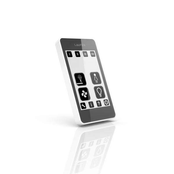 For at gøre brugerfladen endnu mere komplet, har Laufen udstyret RIVA med en touchscreen fjernbetjening, der kommunikerer trådløst med brugeren, og giver mulighed for indstillinger af personlige præferencer.